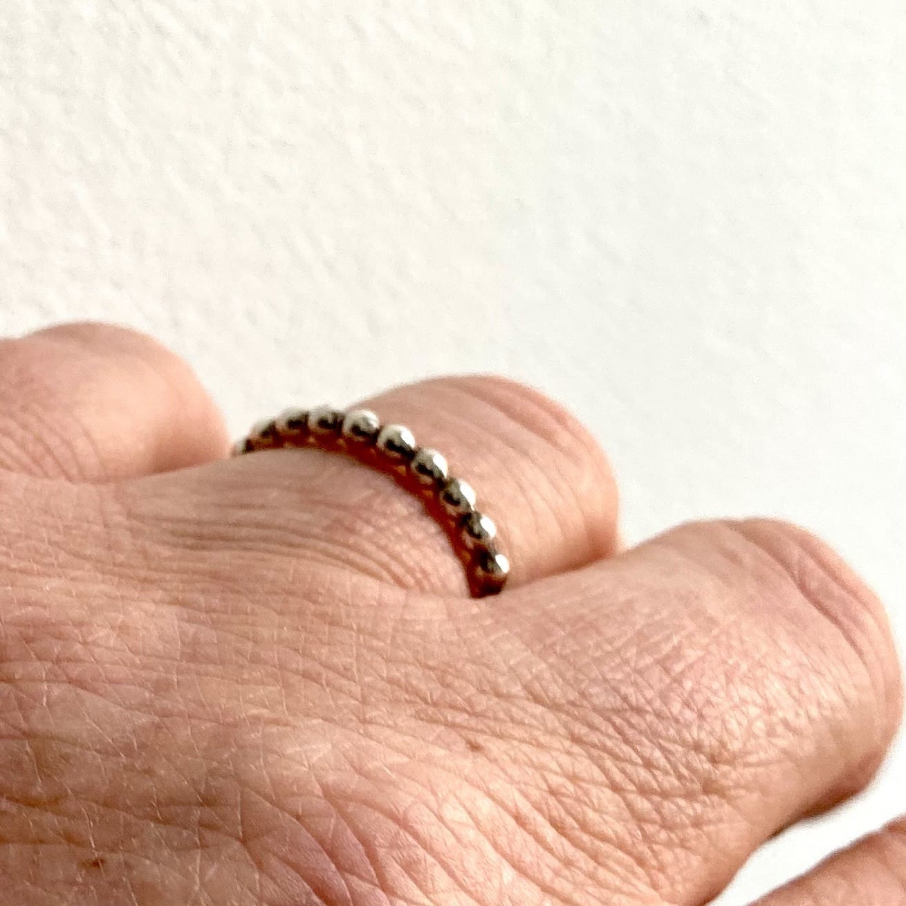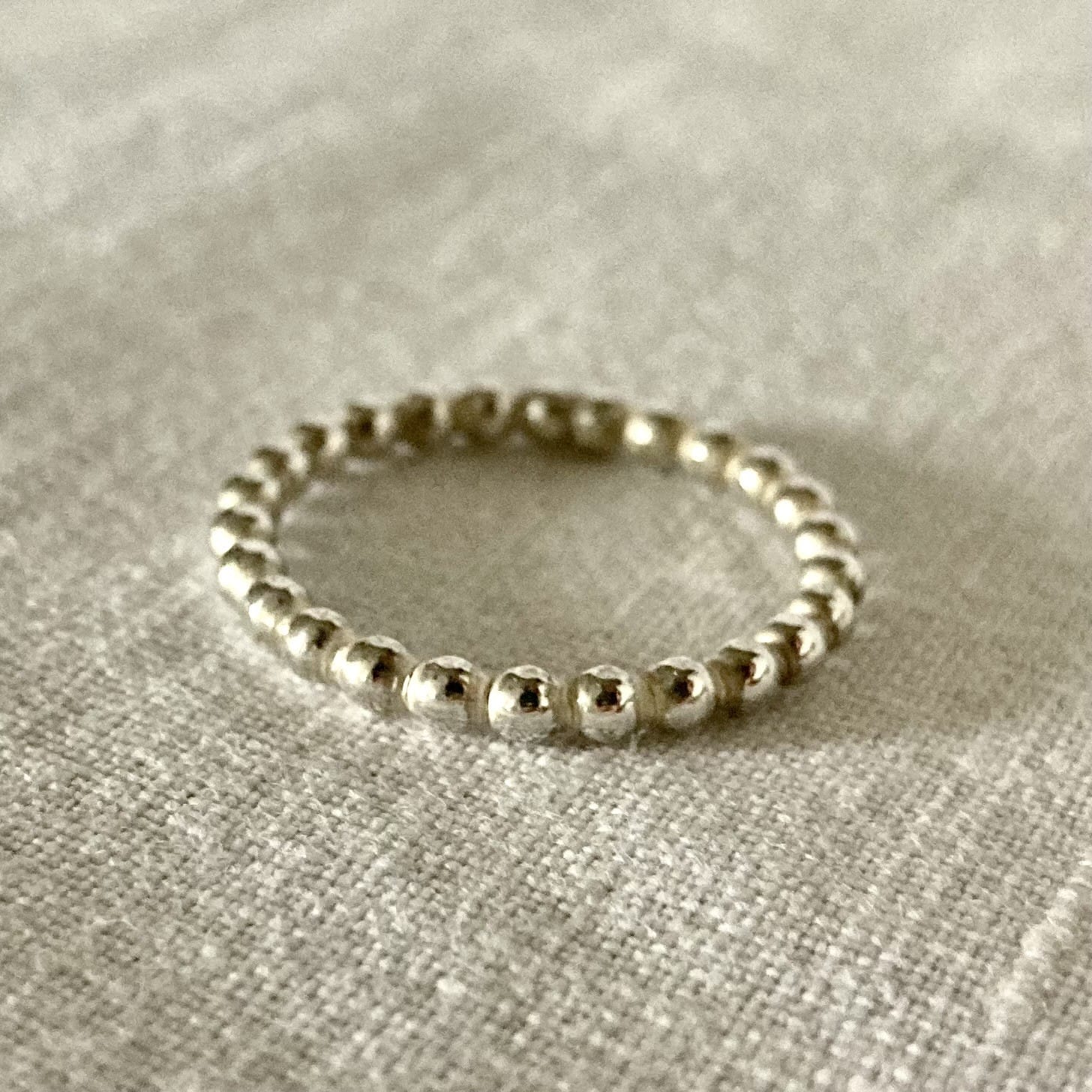 Anneau artisanal fil perlé argent 925 épaisseur 2,5 mm. Bague artisanale inspirée par la nature, idéale seule ou en superposition avec des anneaux martelés. Un bijou éthique, raffiné et intemporel.