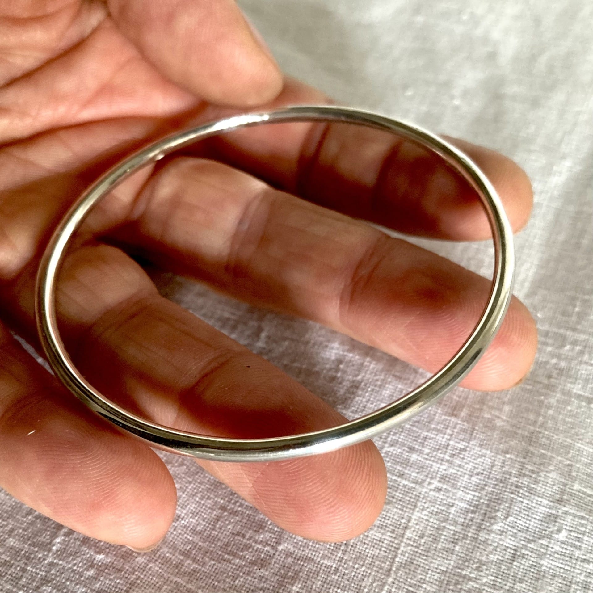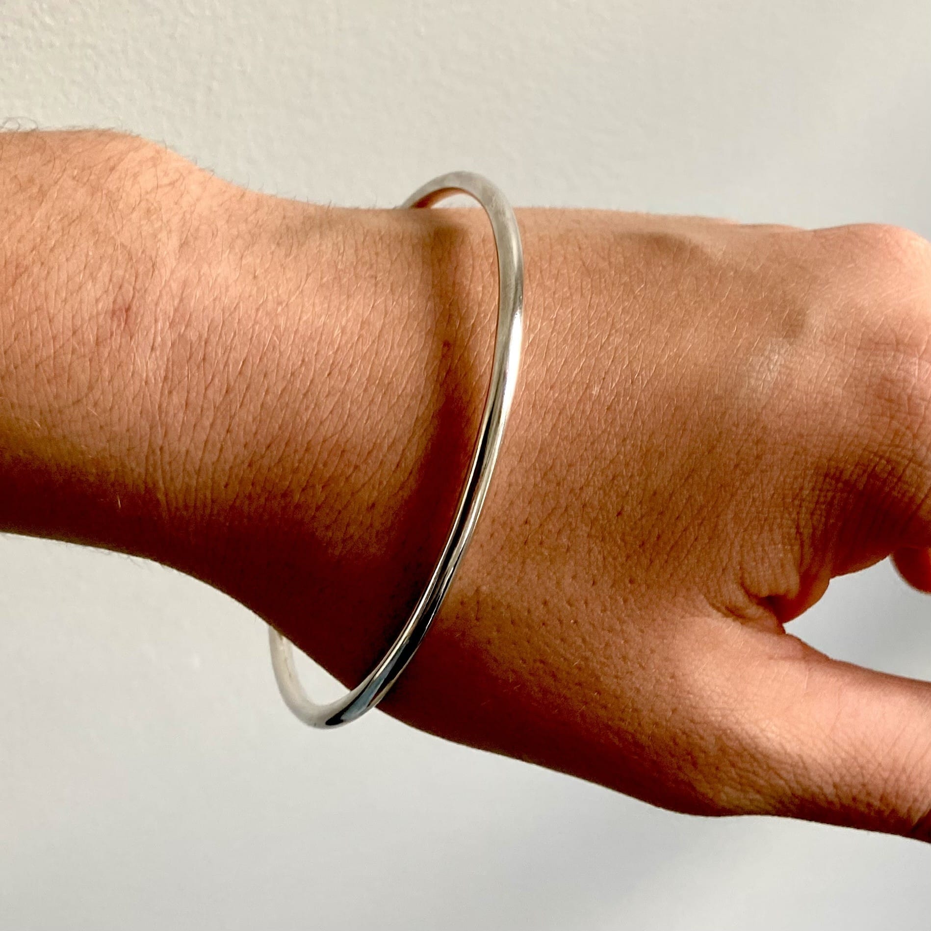 Bracelet jonc argent 925 artisanal, minimaliste et élégant. Un bijou intemporel poli à la main, inspiré par la nature, symbole d’harmonie et de durabilité.